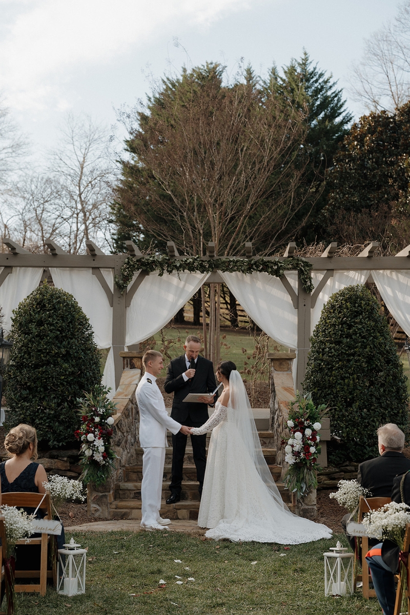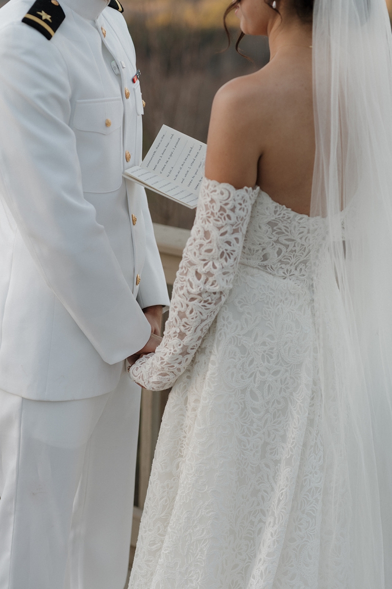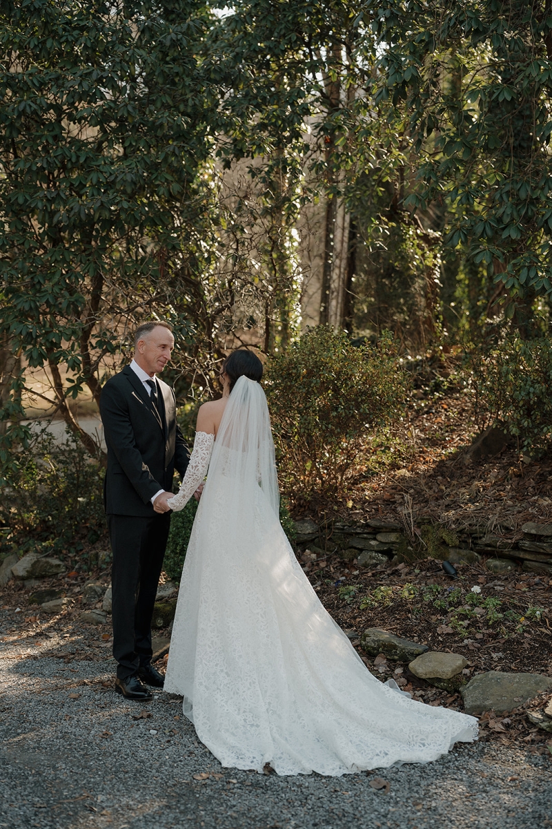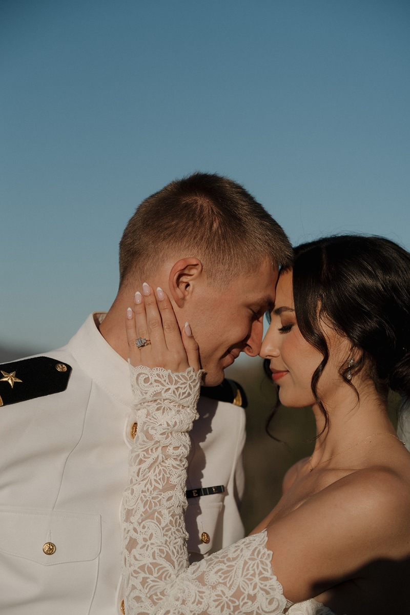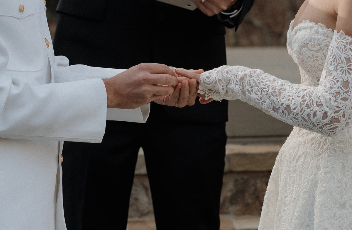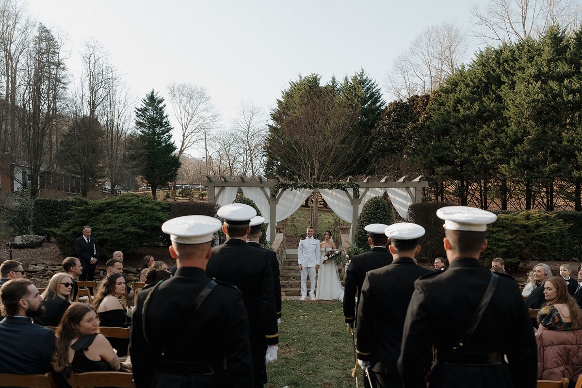 The couple also incorporated a meaningful personal touch into their ceremony. Dennis’ fellow Navy service members wore their dress uniforms, as is customary for ceremonial occasions, while Dennis himself wore Navy dress whites. Following their vows, the newlyweds stepped forward together beneath a ceremonial Sword Arch, formed by fellow service members – an age-old naval tradition symbolizing honor, protection, and lifelong devotion. Framed by the mountains and surrounded by shipmates, family, and friends, the moment felt both timeless and deeply personal. This weekend was a true reflection of what an extended-stay destination wedding at Hawkesdene meant for this beautiful couple.