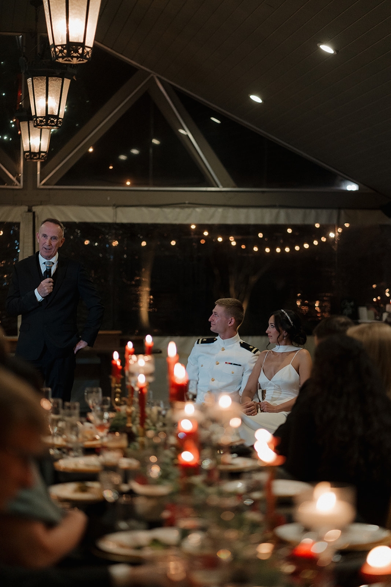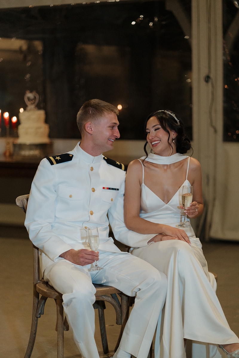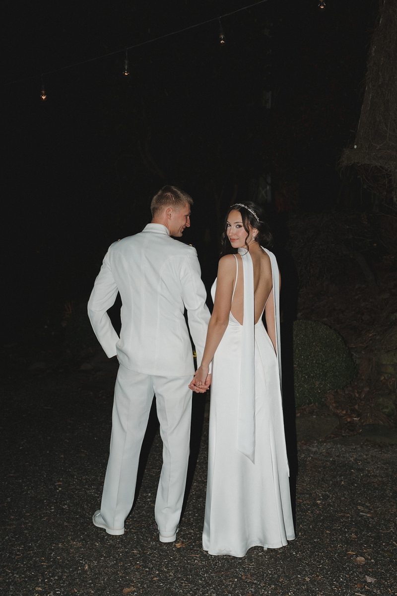 The couple also incorporated a meaningful personal touch into their ceremony. Dennis’ fellow Navy service members wore their dress uniforms, as is customary for ceremonial occasions, while Dennis himself wore Navy dress whites. Following their vows, the newlyweds stepped forward together beneath a ceremonial Sword Arch, formed by fellow service members – an age-old naval tradition symbolizing honor, protection, and lifelong devotion. Framed by the mountains and surrounded by shipmates, family, and friends, the moment felt both timeless and deeply personal. This weekend was a true reflection of what an extended-stay destination wedding at Hawkesdene meant for this beautiful couple.