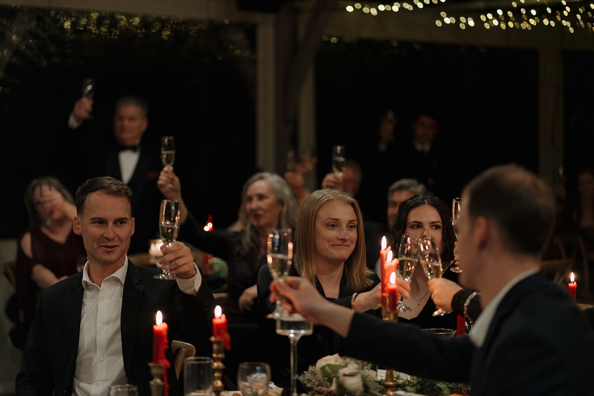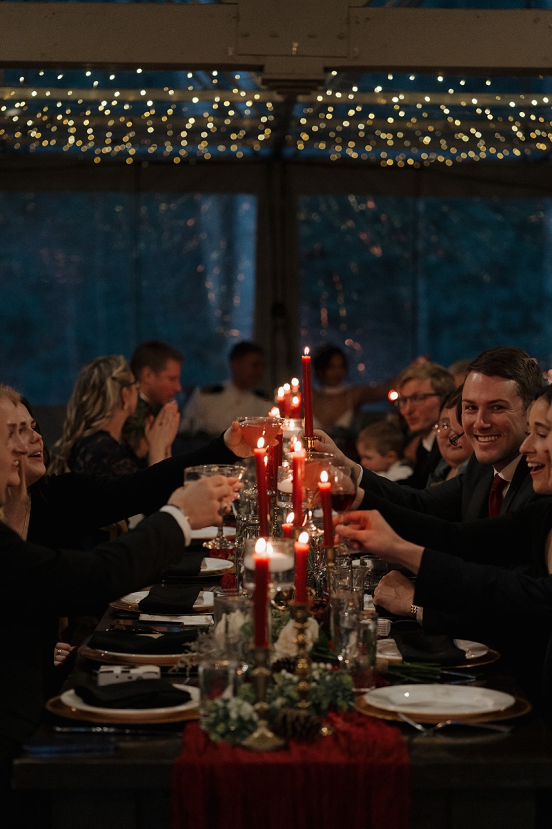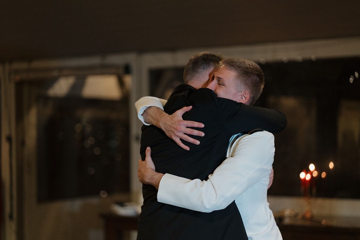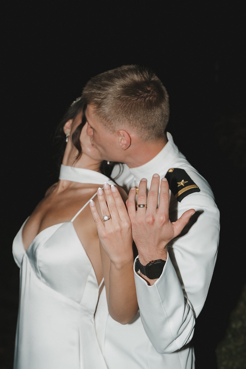 The couple also incorporated a meaningful personal touch into their ceremony. Dennis’ fellow Navy service members wore their dress uniforms, as is customary for ceremonial occasions, while Dennis himself wore Navy dress whites. Following their vows, the newlyweds stepped forward together beneath a ceremonial Sword Arch, formed by fellow service members – an age-old naval tradition symbolizing honor, protection, and lifelong devotion. Framed by the mountains and surrounded by shipmates, family, and friends, the moment felt both timeless and deeply personal. This weekend was a true reflection of what an extended-stay destination wedding at Hawkesdene meant for this beautiful couple.